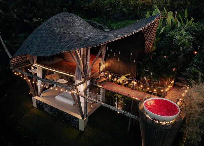 La Camaya Bali - Magical Bamboo Houses se encuentra a una distancia de 7 km del Templo Madre de Besakih y ofrece un jacuzzi y una bañera de hidromasaje. Esta villa, que ofrece a sus huéspedes Wi-Fi y un aparcamiento privado gratuito, está a 10 minutos en coche de la Telaga Waja River.